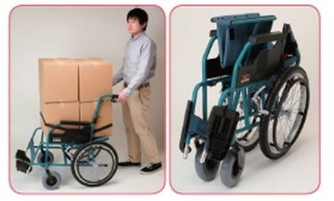 背もたれを倒せばリヤカーモードに早変わり!一台二役の車椅子です。